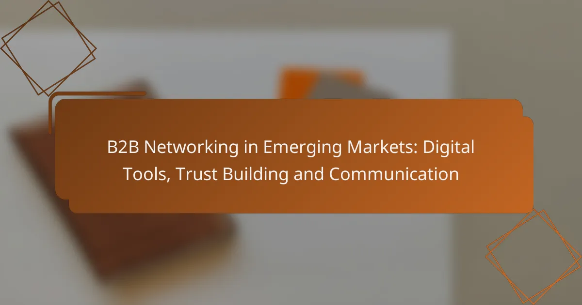 B2B networking in emerging markets is increasingly reliant on digital tools that facilitate communication and relationship-building. Establishing trust is essential, and businesses can achieve this by forming local partnerships, showcasing testimonials, and engaging with their communities. By leveraging effective communication strategies, companies can enhance their networking efforts and foster meaningful collaborations.
