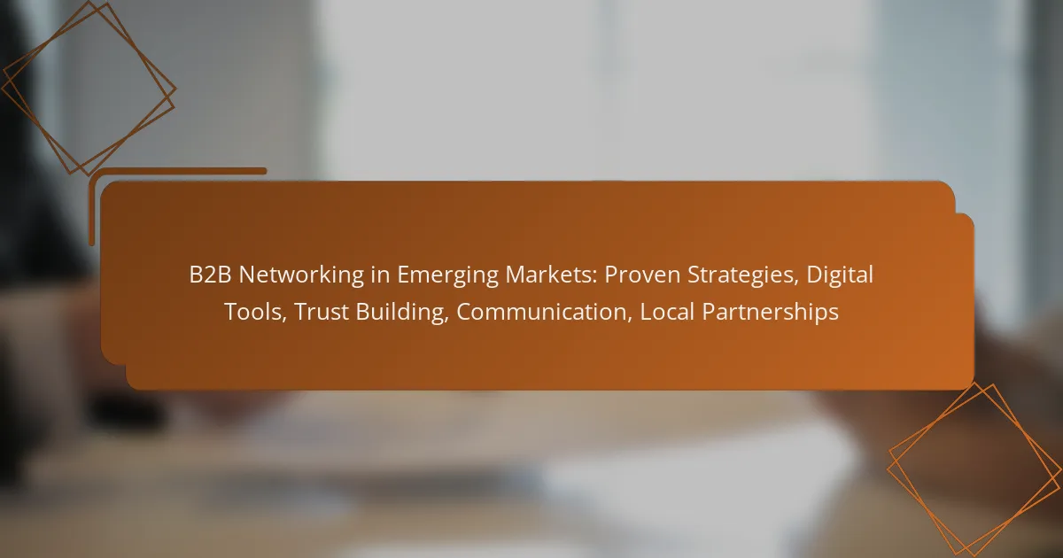 B2B networking in emerging markets requires a strategic approach that emphasizes relationship-building and trust. By leveraging digital tools and engaging with local communities, businesses can forge valuable connections that promote growth and collaboration. Establishing consistent communication and transparency is essential for fostering long-term partnerships in these dynamic environments.